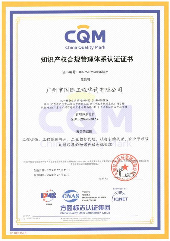 知識產權管理體系認證證書