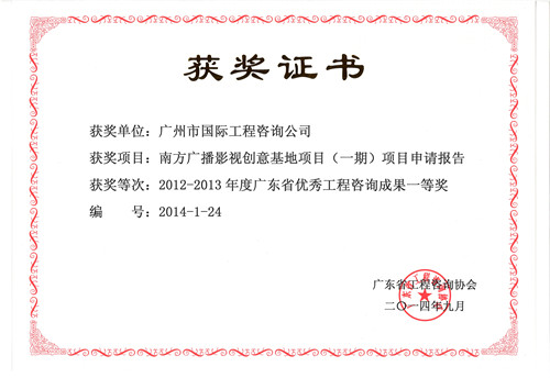 《增城少年宮項目可行性研究報告》獲2012-2013...