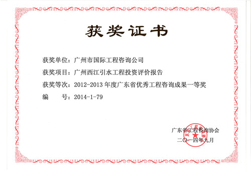 《廣州西江引水工程投資評價報告》獲2012-2013...