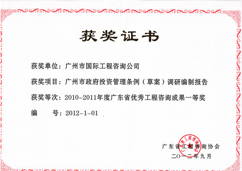 2011年度廣東省優(yōu)秀管理咨詢機(jī)構(gòu)