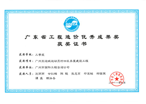 《廣州亞運(yùn)城運(yùn)動(dòng)員村四區(qū)房屋建筑工程》獲2011...