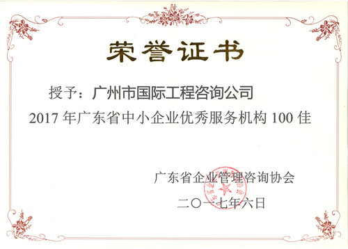 2017年廣東省管理咨詢行業(yè)百佳服務(wù)質(zhì)量獎