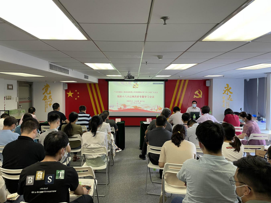 駱書記要求,一是深刻認識黨的“十八大”以來,以習近平同志為核心的黨中央舉旗定向、謀篇布局,團結帶領全黨全國各族人民攻堅克難、砥礪奮進,推動黨和國家事業取得了全方位開創性的歷史性成就。二是扎實開展好黨史學習教育,堅持實事求是原則,樹立正確黨史觀和大歷史觀,旗幟鮮明講政治,在百年黨史中汲取推進公司新發展階段的奮進力量。三是時刻以習近平新時代中國特色社會主義思想為指導,夯實“國企姓黨”政治意識,進一步深化國企改革,穩步實施國企改革三年行動,積極推進全過程工程管理咨詢業務轉型升級,不斷提升公司核心競爭力和價值創造力。