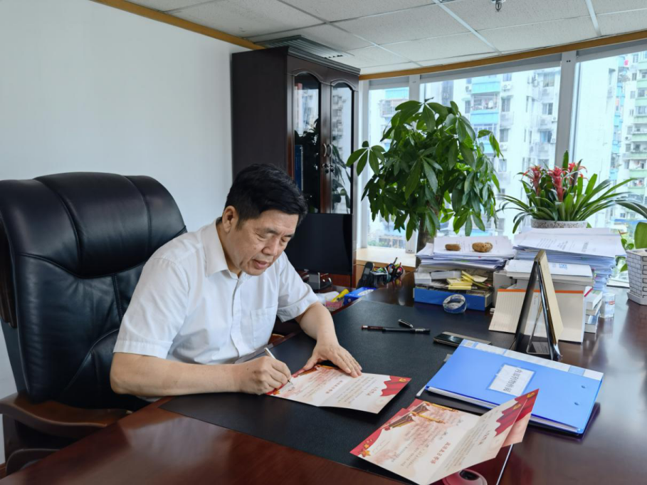 圖1:黨委書記、總經(jīng)理駱寧安同志為各支部書記寫“政治生日”賀卡