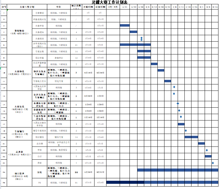 以大賽總體方案為綱領(lǐng),圍繞大賽策劃、初選、復(fù)選、導(dǎo)師培訓(xùn)、總決賽等核心節(jié)點(diǎn),細(xì)化形成26項(xiàng)任務(wù)清單。實(shí)行周例會(huì)機(jī)制,通過(guò)可視化看板動(dòng)態(tài)跟蹤關(guān)鍵節(jié)點(diǎn)進(jìn)度,確保賽事工作環(huán)環(huán)相扣。